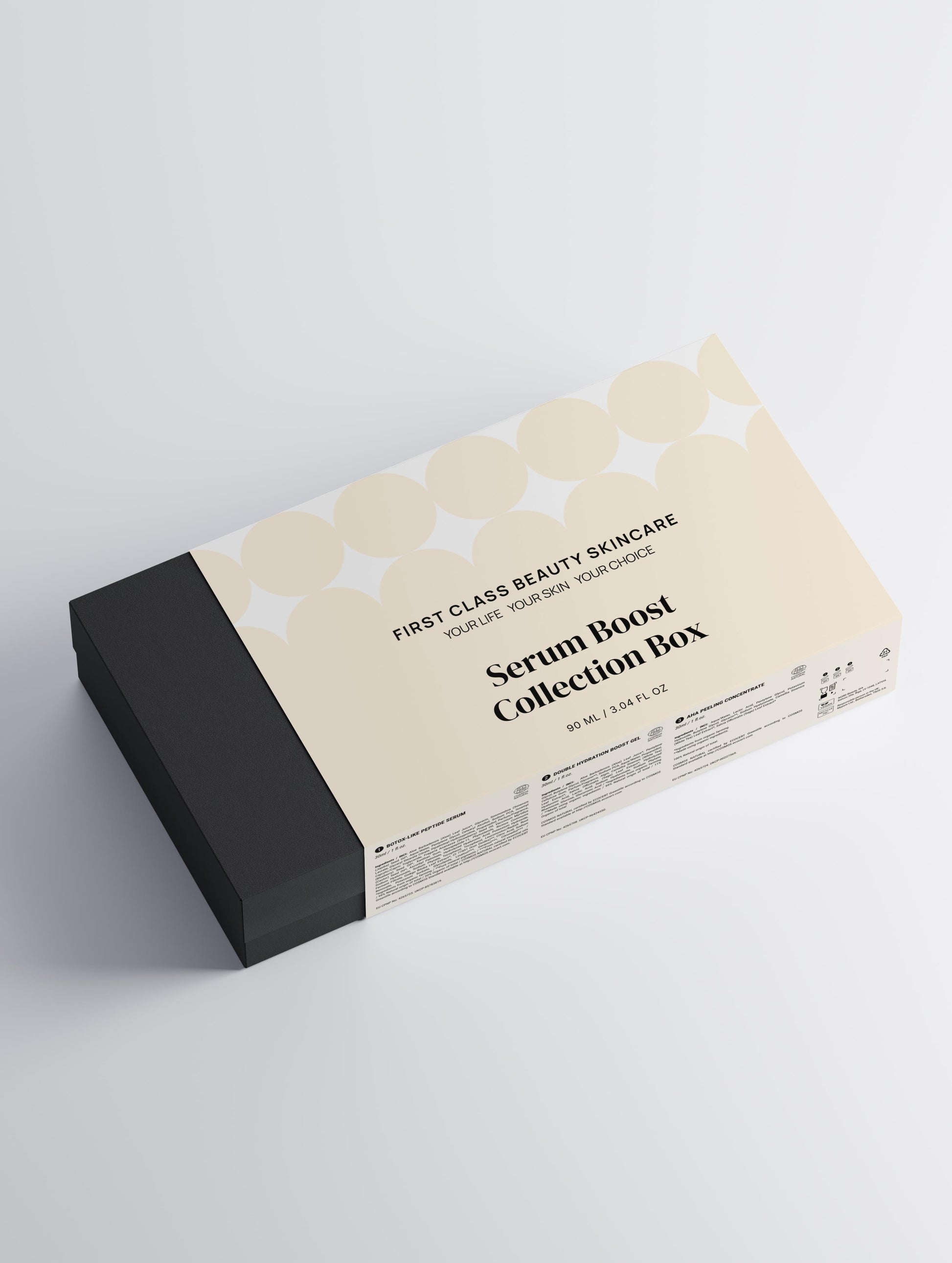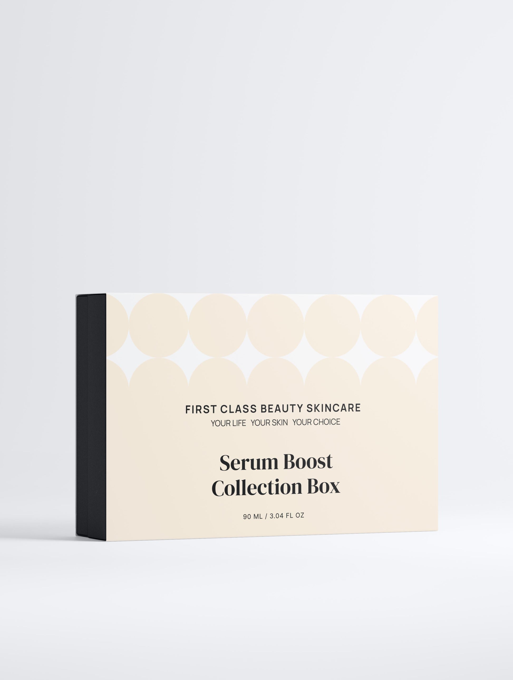 Unsere drei hochdosierten Seren zusammen in einer Box stehen für: Hauterneuerung, Tiefenversorgung mit Feuchtigkeit und hochwirksamen Anti Aging Peptiden für die Anregung der Kollagenproduktion.