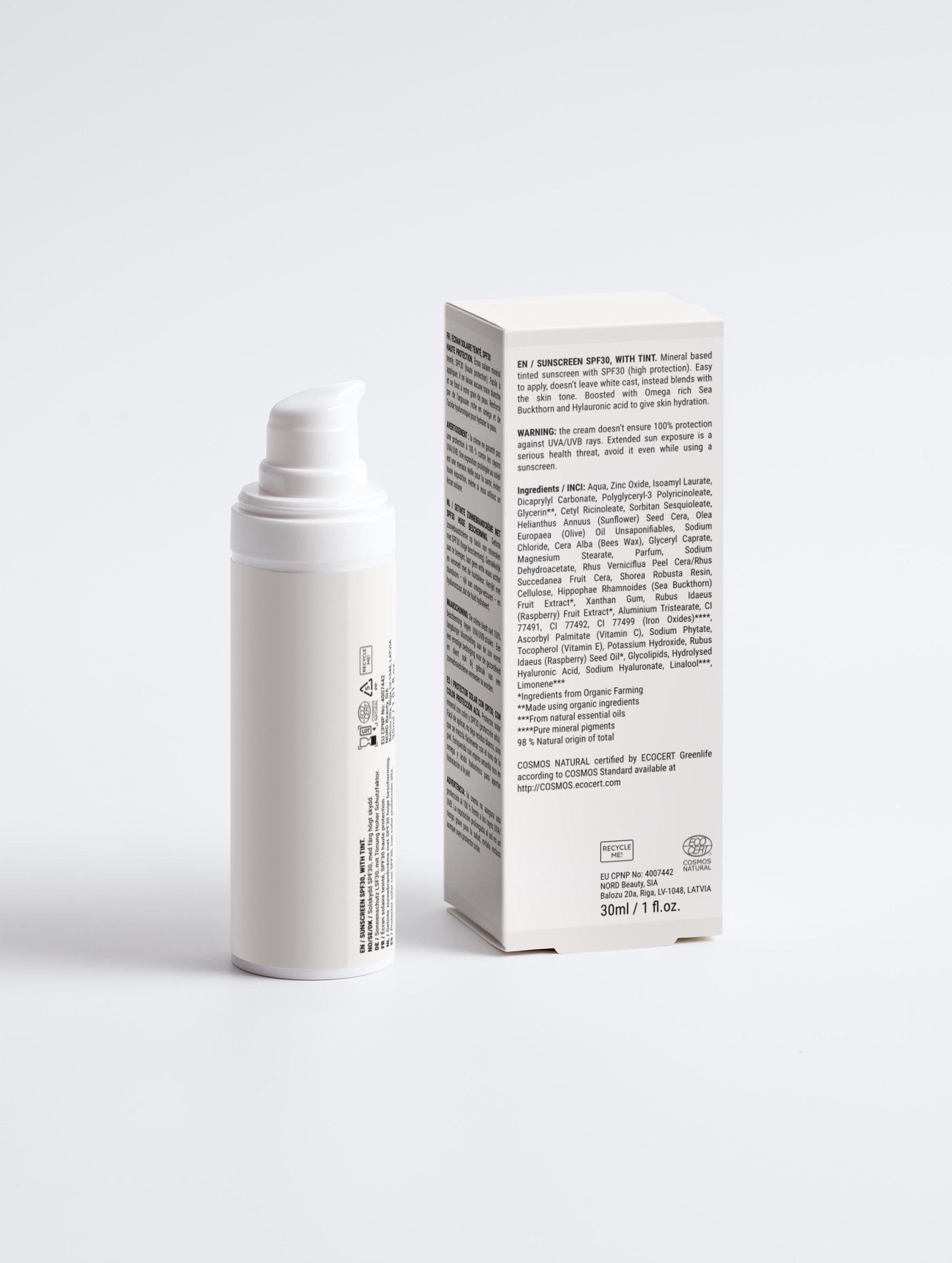 Unser Sonnenschutz auf Mineralbasis mit Tönung und LSF30. Einfach aufzutragen, hinterlässt keine weißen Rückstände, sondern verschmilzt mit Ihrem Hautton. Angereichert mit Omega-reichem Sanddorn und Hyaluronsäure, um der Haut den ganzen Tag Feuchtigkeit zu spenden.